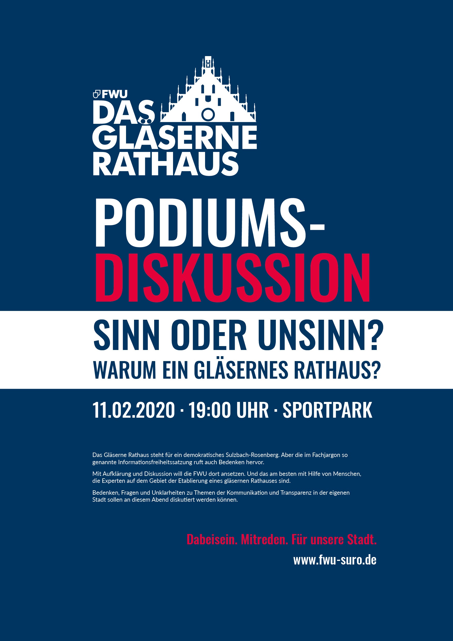 Die FWU veranstaltete eine Podiumsdiskussion und lud hochkarätige Gäste wie Dr. Nahr (studierter und promovierter Politwissenschaftler) und RA Schindler (Rechtsanwalt, Fraktionsvorsitzender der SPD in Schwandorf und langjähriges Mitglied des bayrischen Landtags) sowie alle Fraktionen ein, um sich zu informieren und sachlich über das Thema zu sprechen. Obwohl sogar ein Bürgermeister aus einer Nachbargemeinde kam, glänzten leider alle eigenen großen Parteien mit Abwesenheit und scheinen kein Interesse an Informationszugängen für Bürger zu haben.