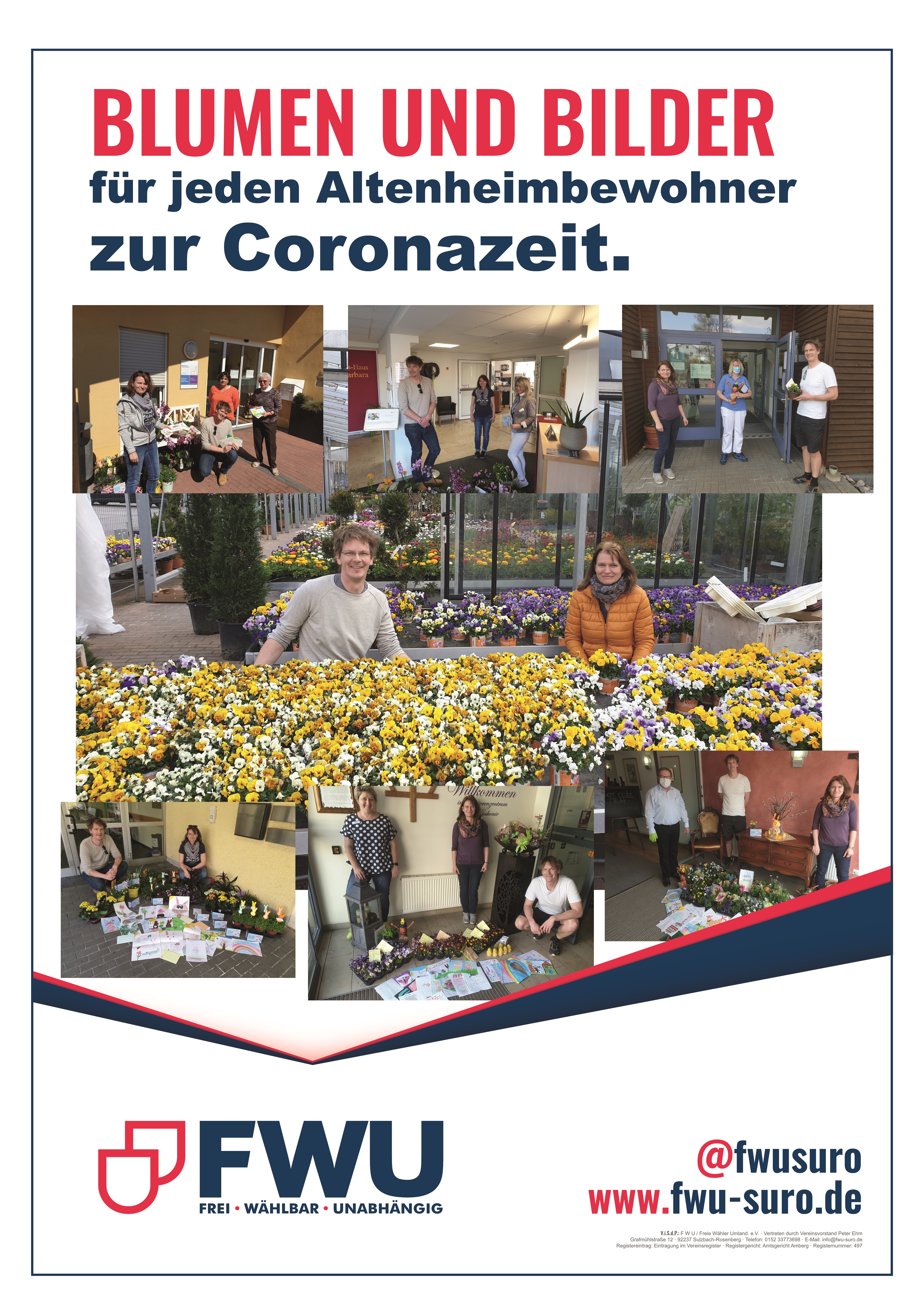 „Am Anfang haben wir noch gelacht und als Arbeitsaufhänger gesagt, dass in jedes Zimmer eine Blume und ein schönes Bild gehört, aber wir hätten nie gedacht, dass es so viele hilfsbereite Künstler in Sulzbach-Rosenberg gibt und das dieser Aufhänger am Ende auch realisiert werden konnte“: so die Initiatoren. Am Ende waren sogar noch genug Blumen für das Kinderheim, die Apotheken, das BRK und das Krankenhaus da.