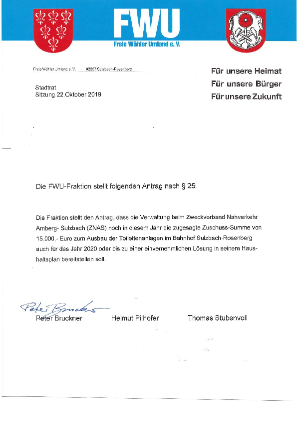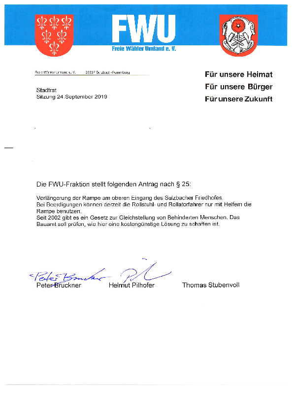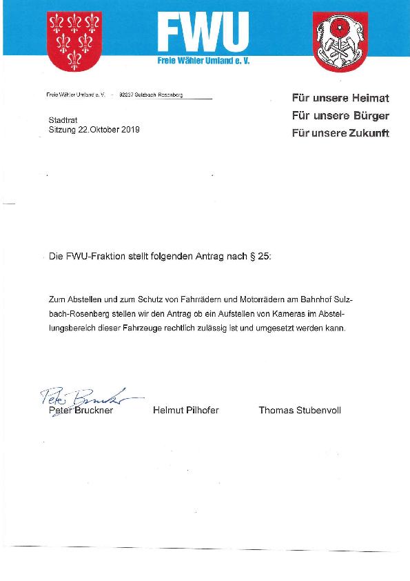 Auf Grund von Wünschen aus der Bevölkerung, die an unsere Viertelmeister herangetragen wurden, stellen wir den Atrag auf Aufstellen von Kameras im…