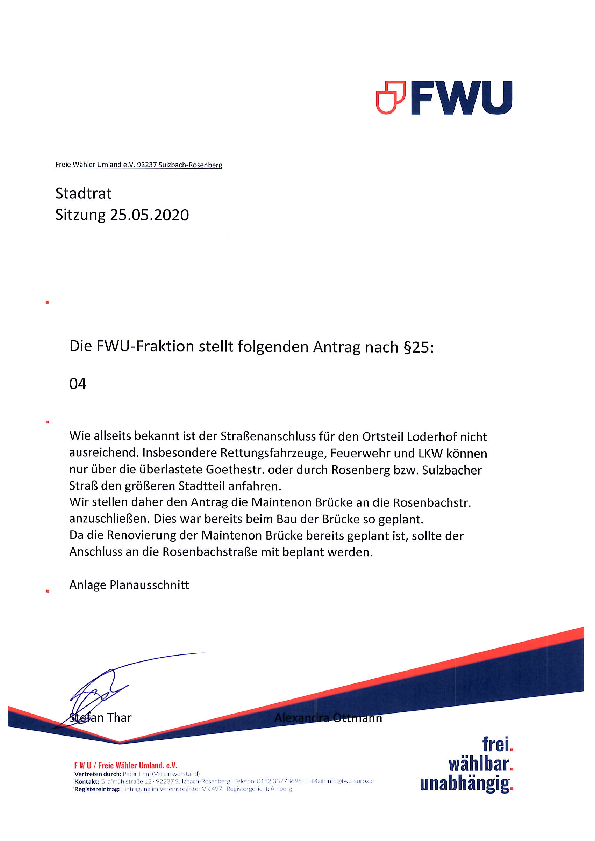 Auf Grund von Beschwerden, die Bewohner der Göthe- und Südstrasse die an uns herangetragen wurden, bitten wir die Verwaltung um eine schriftliche…