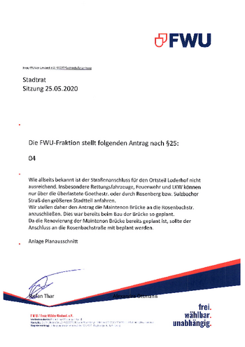 Die FWU stellte daher den Antrag die Maintenon Brücke an die Rosenbachstr. anzuschließen. Dies war bereits beim Bau der Brücke so geplant.