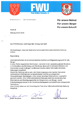Einreichung auf Umsetzung des Gläsernen Rathauses nach Vorgaben des Informationsfreiheitsgesetzes.